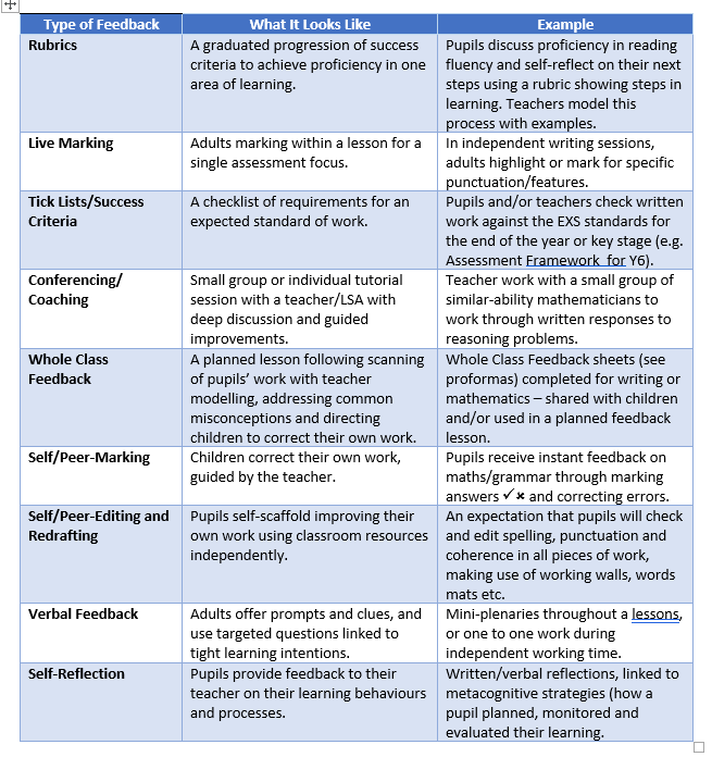 - High quality feedback to pupils;